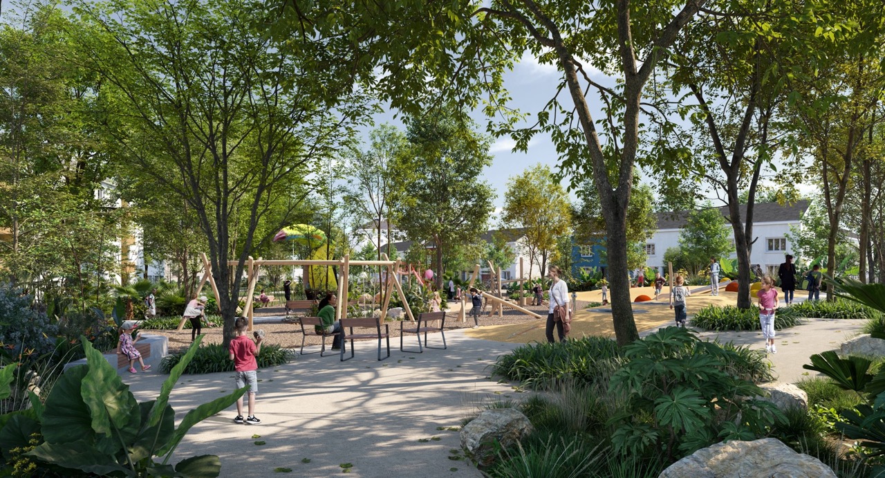 Pour accompagner la rénovation du centre commercial, la Ville prévoit de rénover les espaces publics alentours : la place Henri-Fogel et les espaces autour de la salle Marcel-Pagnol. Pour compléter ces aménagements, un jardin public va être créé entre la route des Fréchets et l’allée des Orchidées qui intégrera un jeu à l’image du Dragon des mers en centre-ville : le Toucan (photo ci-dessus).